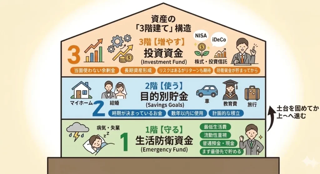お金を役割ごとに分けることで、生活防衛資金の立ち位置を明確にしましょう!