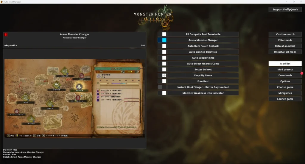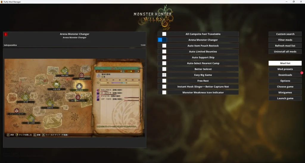今回紹介するのは、ワイルズのMOD『Arena Monster Changer』です!